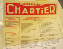 パリ日記も最終章となり、このページはタイトルどおりの断片あれこれです。貧乏旅行ゆえ、ランチにはもっぱらニュテラというチョコクリームのクレープとかケバブのサンドウィッチ(サンドウィッチグレックという)など、パリでは3歩あるけば見つかる屋台のファストフードラヴ、だったワタクシ。夜はもっぱら自炊だったのであまりレストランに入る機会はなかったのですが、オペラ座近くにあるレストラン「シャルティエ」にはランチタイムに2度ほどいきました。古い駅を思わせる年期の入った内装、気さくで親しみやすいギャルソン、おまけに前菜からデザートまでしっかり食べても10ユーロそこそこという安さ!この紙のメニューはこっそり1部持ち帰って、今ウチの冷蔵庫に貼ってあります。ときどき眺めては、エスカルゴも食べたかったな〜なんて。次に訪れる時にはメニューを見ずともオーダーできそうです(笑。