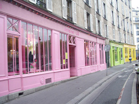 で、最後のがサンマルタン運河沿いにあるアントワーヌ・エ・リリというブティックとカフェ、雑貨屋がカラフルに塗りわけられて3軒並んだおしゃれ女の子ショップ。映画で有名な「北ホテル」などがある界隈ですが、この辺にあるアート系の本屋とかレコードショップは日本のお店にかなり雰囲気が近くて、一瞬堀江とか代官山あたりにいる錯覚に陥りました。実際、日本の雑誌「Relax」とか日本のデザイン書などもたくさん置いてあってビックリ。たいてい若い店主が仲間たちと楽しそうにやっていて、気軽に声をかけてくれたりもします。